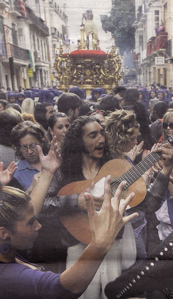 Sale el trono por calle Los Frailes acompañado por el griterío de la multitud y las soleares que Miguel Ángel Rufián interpreta desde el tercer piso de enfrente, ajeno a todo lo que sucede abajo. Allí, justamente, vive el Pelúo. .