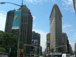 Flatiron District, debe su nombre al famoso edificio triangular Flatiron building (entonces, la estructura más alta del mundo), aún primordialmente comercial y situado en zona céntrica sin la bulliciosa atmósfera comercial de Midtown. Sin embargo, hay también bonitos apartamentos situados en los típicos edificios Flatiron que se caracterizan por ventanas enormes y molduras en las fachadas del edificio.