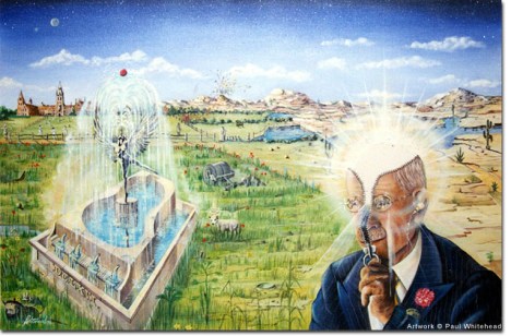 Los dibujos, para que todo vaya a juego con la música, son ilustraciones de Paul Whitehead, autor de muchas portadas de Génesis y Van der Graaf Generator entre otros grupos.