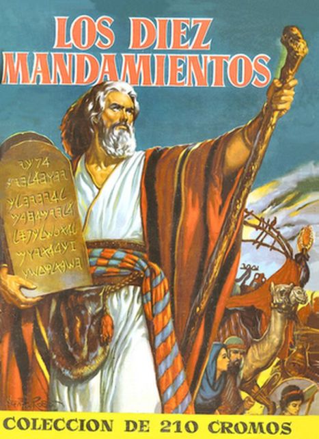 Un antiguo y entrañable álbum llamado “Las Maravillas del Universo” que se completaba con los cromos que salían en las chocolatinas Nestlé. Y por fin – y esos son propiedad de Girilín uno de Bugs Bunny, el maravilloso Vida y Color 1 (Álbum Maga) y uno irrepetible y que hace que se me salten las lágrimas: Los Diez Mandamientos Basado en la película protagonizada por Charlton Heston. Una maravilla, repito.