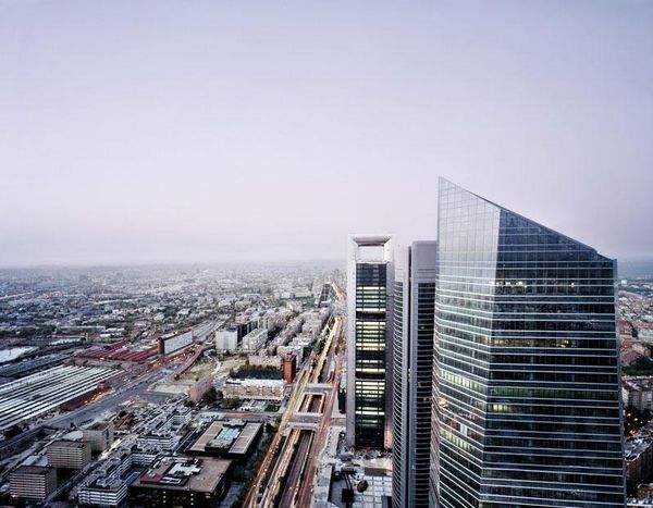 No, Madrid. A 230 metros del suelo, altura a la que se encuentra la azotea de la Torre Espacio , el tráfico del paseo de la Castellana no es más que un lejano rumor. El conjunto de rascacielos conocido como «Cuatro Torres» fue levantado entre 2004 y 2008. La más alta es la Torre Cajamadrid , que con 250 metros es también la más alta de España y la quinta de Europa.