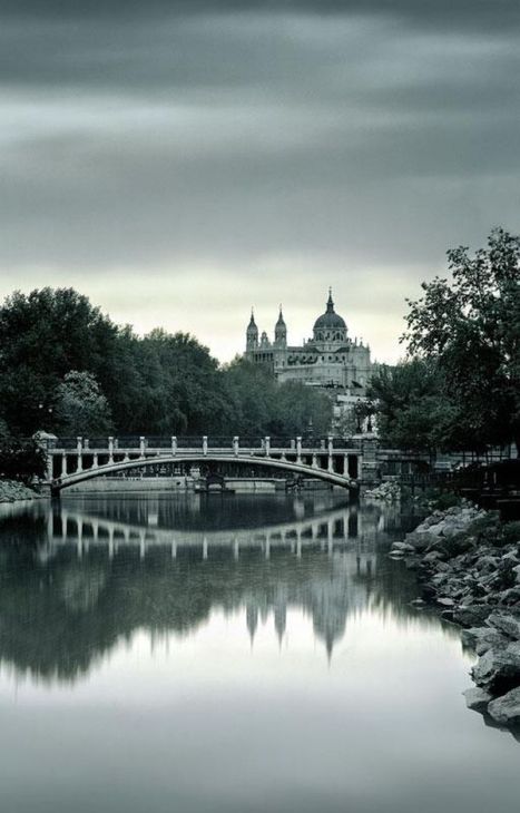 Si, Madrid. La mole de la catedral de la Almudena se levanta poderosa encaramada sobre el promontorio donde hace mil años nació la ciudad. Unos metros más abajo discurre el humilde Manzanares, el aprendiz de río vilipendiado hasta la extenuación. Cuentan que, en cierta ocasión, un regidor de la Villa invitó a Lope de Vega a la inauguración de un puente. El dramaturgo se presentó en la ribera y, al ver el contraste entre la magnificencia del puente y la miseria del río, le dijo al regidor que Madrid tenía que elegir entre comprarse un río o vender el puente. Hoy, después varias obras hidráulicas que han estabilizado su caudal y le han devuelto la limpieza al agua, la ciudad puede tener las dos cosas: agua (aunque no mucha) y pequeños puentes como el de la reina Victoria , construído en 1908.
