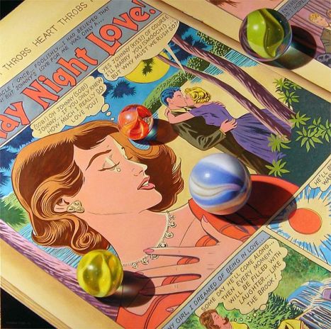 Hay alguna referencias a fruta, a flores, a canicas de colores -al estilo de Glennray Tutor, aunque sin llegar a su producción, del cual habrá aquí en este sitio, una próxima entrega- y pasando por un autorretrato que no es sino un homenaje a su admirado M.C. Escher.