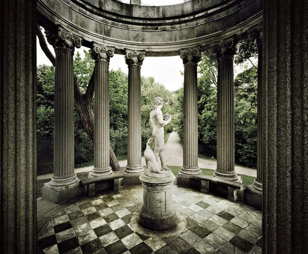 No, Madrid. Al noreste de la ciudad, no muy lejos del aeropuerto de Barajas, se encuentra el parque del Capricho. En origen fueron los jardines del palacio de los duques de Osuna, un palacete neoclásico que se encuentra en uno de los extremos del parque. Tanto los jardines como el palacio fueron levantados entre a finales del siglo XVIII. El templete dedicado a Baco, dios del vino, es uno de los monumentos más característicos de estos aristocráticos jardines.