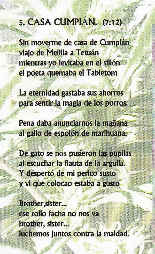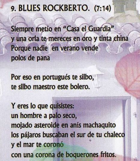 También me regaló el único soneto a Torrijos. Y, por ser aún más generoso, me dedicó y firmó una letra que será canción -aún por salir- y dedicada a la memoria de Rockberto: Almuecín de las nubes. Perico «Tabletom» Ramírez anda en ello, según me dijo.