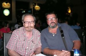 De Cernuda a Chicho Sánchez Ferlosio con quien intercambié canciones una noche –le comenté- en Casa Cumpián. De Alberti a Don Francisco de Quevedo. Jorge Guillén y la anécdota de los basureros que se pasaban a visitarlo. Una charla ilustrativa que adobaba con lecturas de sonetos propios que – a los pies de la Catedral-conformaron todos ellos, una tarde inesperada e imperecedera en mi memoria. De Paco Pedraza a Javier Espinosa. De Paco Cumpián a Fernando Merlo. Paco López Navidad y Julio Quesada. CTB yLa Cochera. Catetos en la Campana. Coronas de boquerones fritos. Los martes trece de nosotros mismos.