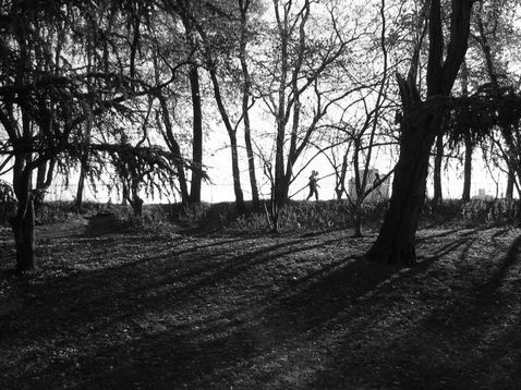 Le dolía el cuerpo como sin acabase de cruzar la meta de la maratón. Comenzó a caminar sin rumbo, y pronto se sintió más ligero. Probó a correr por el camino de tierra ahora que sus pasos le parecían distintos, y disfrutó de manera infantil con el avance del pie derecho y el izquierdo. Uno dos uno dos. Extrañamente el parque parecía no tener fin, pero a Carlos no le importó, quiso seguir corriendo con su recuperada vitalidad. En el horizonte, las luces de los rascacielos parpadearon como inciertas balizas sobre el firmamento. Carlos echó la cabeza hacia atrás y cerró los ojos. Se imaginó sobre los poderosos brazos del puente de Verrazano al comienzo de una nueva carrera. Cuarenta mil corredores calientan a la espera del pistoletazo de salida; uno dos uno dos inspirar espirar. Carlos pudo visualizar el recorrido resumido en aquella imagen que tanto le fascinaba: la silueta de Manhattan insinuada con trazos de ceniza.