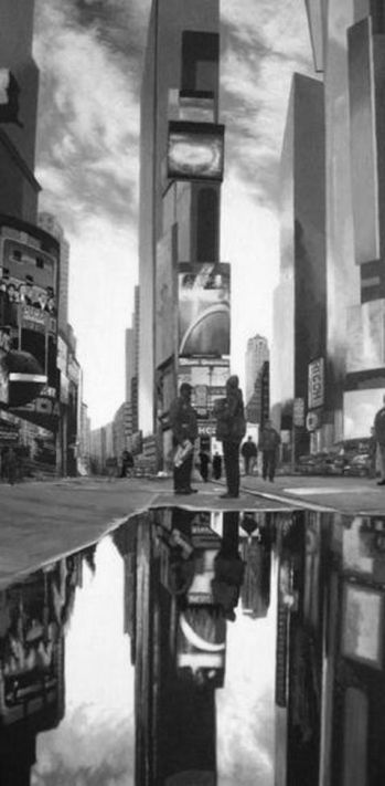 Al salir del Subway en la 42st, comenzó a ascender por la séptima. Respiraba a ritmo, uno dos uno dos, inspirar espirar, repasando en su mente el programa del día: comprar vitaminas en la herboristería del 156 de Buxter; buscar el objetivo 55/180 en el B&H junto a Penn Station; llamar a Cathy; recoger la ropa de la lavandería; escribir un correo con instrucciones para la oficina. Uno dos uno dos, inspirar espirar. Mientras su cabeza se organizaba, se abría paso a través de la apagada imagen de Times Square, inusual a esa hora de la mañana: con intenso tráfico pero sin bandadas de turistas. El ejército de luces, pantallas y anuncios gigantes sobre los edificios aún no destacaba, como una actriz sin maquillaje.