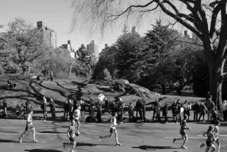 En Columbus Circle ya lucían las pantallas donde el domingo los corredores podrían contemplarse agigantados por unos segundos. Carlos atravesó la plaza y enfiló uno de los senderos. Los pitidos de los taxis se fueron disolviendo en el aire, y al cabo de unos minutos pudo escuchar la fanfarria de una banda cuyos músicos ensayaban sobre la hierba. Carlos sonrió. Con aquel sonido, tan familiar para los corredores de la maratón, percibió los primeros nervios. Uno dos uno dos, inspirar espirar. Imaginó que se encontraba en la línea de salida, un punto incierto del puente de Verrazano, rodeado de corredores, con la imagen empequeñecida e inalcanzable de Manhattan más allá del mar. ¡Cuánto le fascinaba esa silueta, marcada sobre el gris brumoso del amanecer, desafiándole un año más a alcanzarla!
