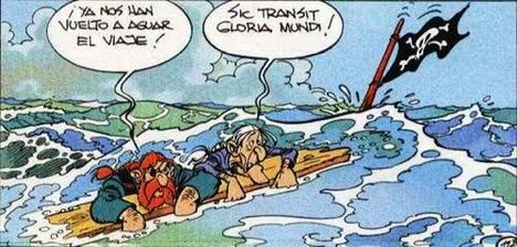 Conservo aún, en mi poder -con una etiquetita que, en la contraportada, que pone: 125 Pesetas- toda la colección original de las Aventuras de Astérix. Así que, de vez en cuando, ojeo algún que otro álbum, y no puedo dejar de -a base de nostalgia irreprimible-, volver a aquel dormitorio de los años sesenta donde dormía feliz rodeado de Godos y Normandos. De Escudos Arvernos y de menhires sin repartir. Comiendo una loca fondue en Helvetia (en las orgías de Diplodocus) y suplicando, ¡por Castor y Pólux! el castigo a latigazos, o el ser trasladado al lago para ser hundido con pesos atados a los pies, al que era merecedor si perdía mi pedacito de pan entre el queso fundido.