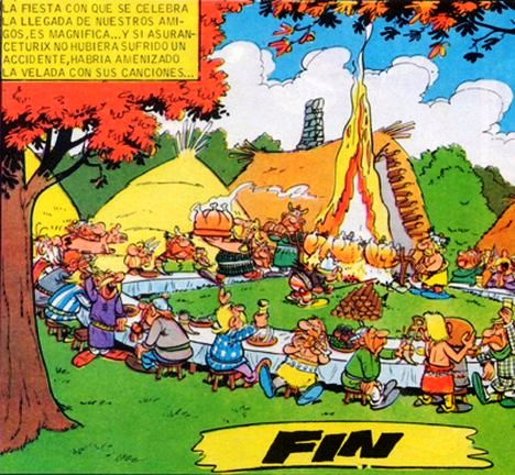 Tengo que decir que, cuando mis padres a eso de las tantas de la madrugada volvían a casa, no eran pocas las veces que me encontraban despierto, pletórico de felicidad y releyendo por enésima vez el álbum adquirido, o cualquier otro mas antiguo, contagiado por el entusiasmo de haber estado compartiendo la última aventura con mis amigos galos. !!!Viva Vercingetórix!!! ¡¡¡ Por Tutatis y por Belenos!!!