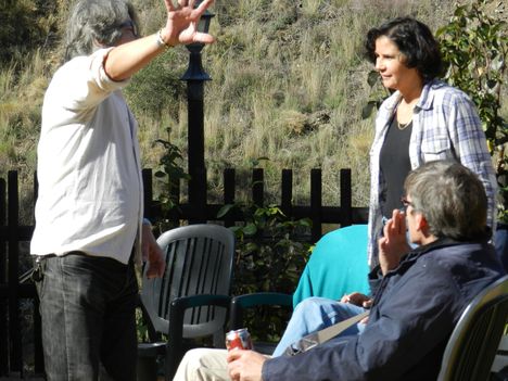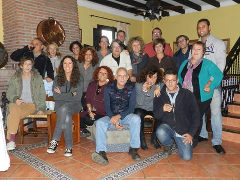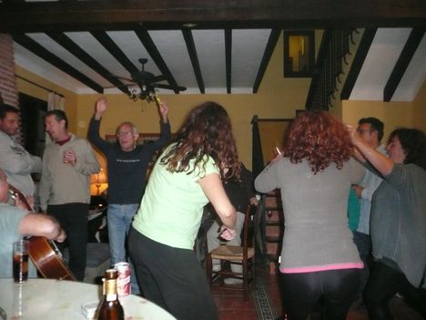 En cualquiera de nuestros festejos, si se da la circunstancia de que haya una alta concentración de integrantes de la familia Cumpián y adláteres (todos lo somos en realidad) cualquier festejo, digo, se transforma en una muestra artística sin parangón. La música se hace polifónica y el baile se transforma en danza. Y así entre estas dos disciplinas, entre canciones y letras, se pasa la tarde festejando al amigo. Tíran ellos de temas propios, Placi (el de la Pepa) de un inacabable repertorio; tíra Father de Dylan y de temas acústicos y armónicas; Tíra Matarífé de Alhaurín de Cat Stevens y Simon y Garfunkel; tíran las chicas de la Agrupación de Coros y Danzas. Y todo eso junto, debidamente mezclado y aliñado, conforma una fiesta imborrable y divertidísima.