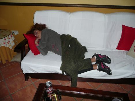 Ángel se había puesto las pilas absolutamente; de una manera tal, que nos tenía implicados a casi todo quisqui; A Shati de Brno (llamado así por su uso continuado de la lengua checa y porque en el primer y último chupito, siempre emite su personal exclamación aludiendo a la famosa ciudad eslovaca de Brno!) con su afamado lomo en manteca. A Placi “el de la Pepa” que fue el encargado de la impedimenta cárnica y la elaboración tortillera; y al reconocido sicario alhaurino Matarifé de Triana que fue el encargado de comprar y de cortar el jamón. Las chicas se encargaron de la sección de pastelería-confitería y a nuestro querido Mohamed, se le nombró Maestro Carnicero, Guardián del Fuego y Jefe de especias insoportablemente picantes. Que Alá lo confunda!