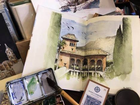 Luis esta vez, nos trae La Alhambra de Granada para que nos sentemos con ella tranquilamente en nuestro sillón más personal y siempre intransferible. Para gozar con esos textos tan bien elaborados cómo descriptivos y con esos trazos magníficos a los que tan mal acostumbrados nos tiene; con esos colores –a veces sólo un tímido asomo– suficientes, justos y adecuados. Luis esta vez, nos trae La Alhambra de Granada con su nueva publicación «The Alhambra Sketchbook».