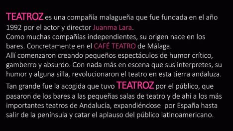 Filed under: MISCELANEA | Tagged: Alvaro Souviron, Álvaro Souvirón García-Huelin, Blog de Father, Blog de Father Gorgonzola, Blog de Gorgonzola, Catalina, Compañía de Teatro Teatroz, Historia de Father Gorgonzola, Juanma Lara, Olivia Lara Lagunas, Souviron, Teatro Echegaray, Teatroz | 2 Comments »