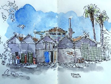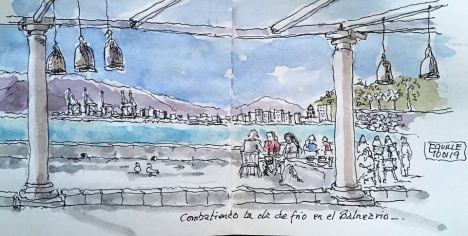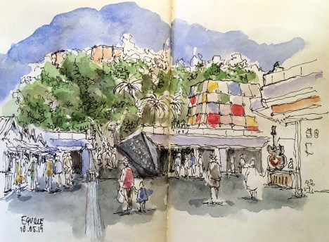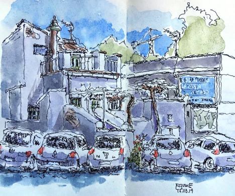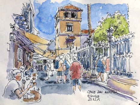 Le comenté a Edu la enorme aceptación que tenía su ultima hornada de dibujos Urban Sketchers. La admiración que levantaba en extraños y conocidos. La enorme dificultad de elegir uno de ellos como favorito porque todos poseen la virtud del paisaje vivo y su perfecta interpretación pictórica.