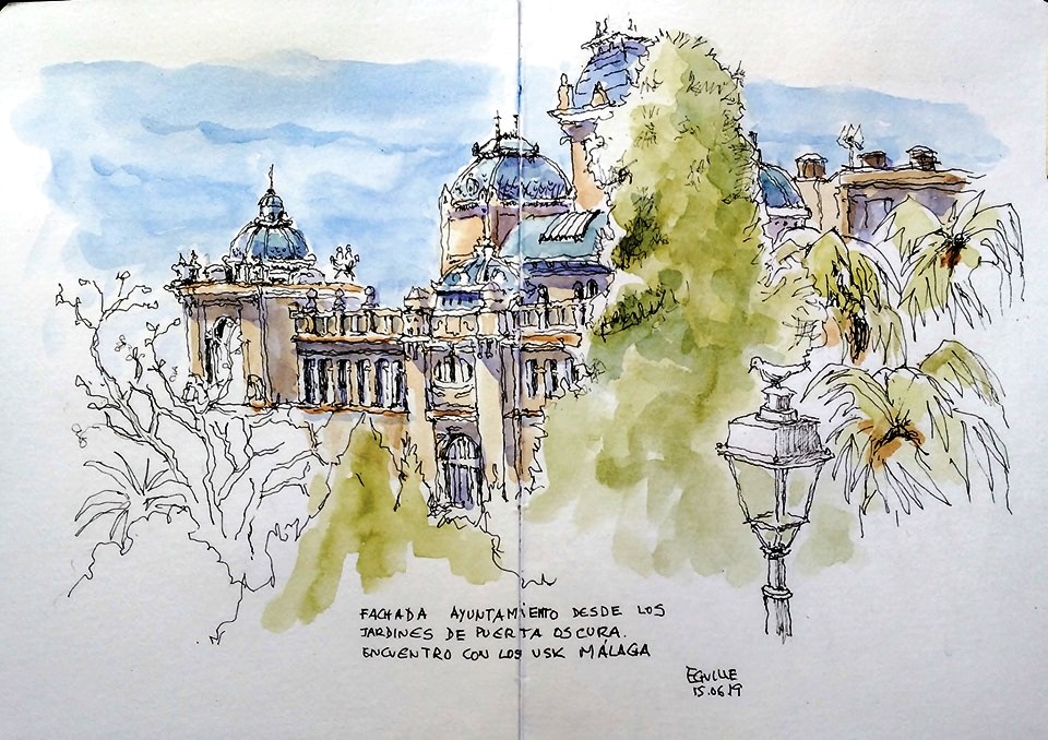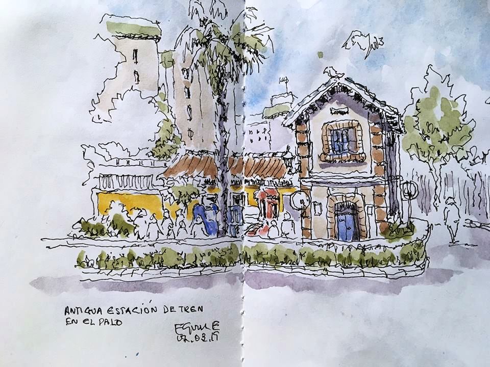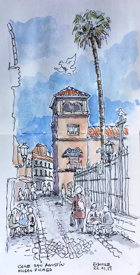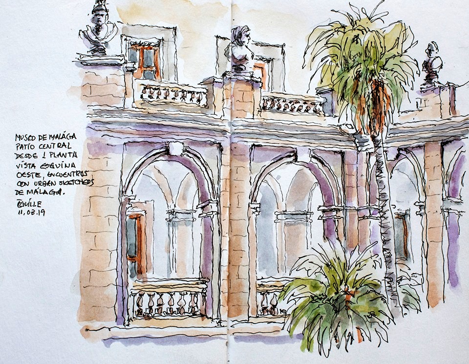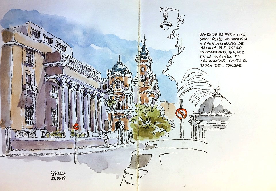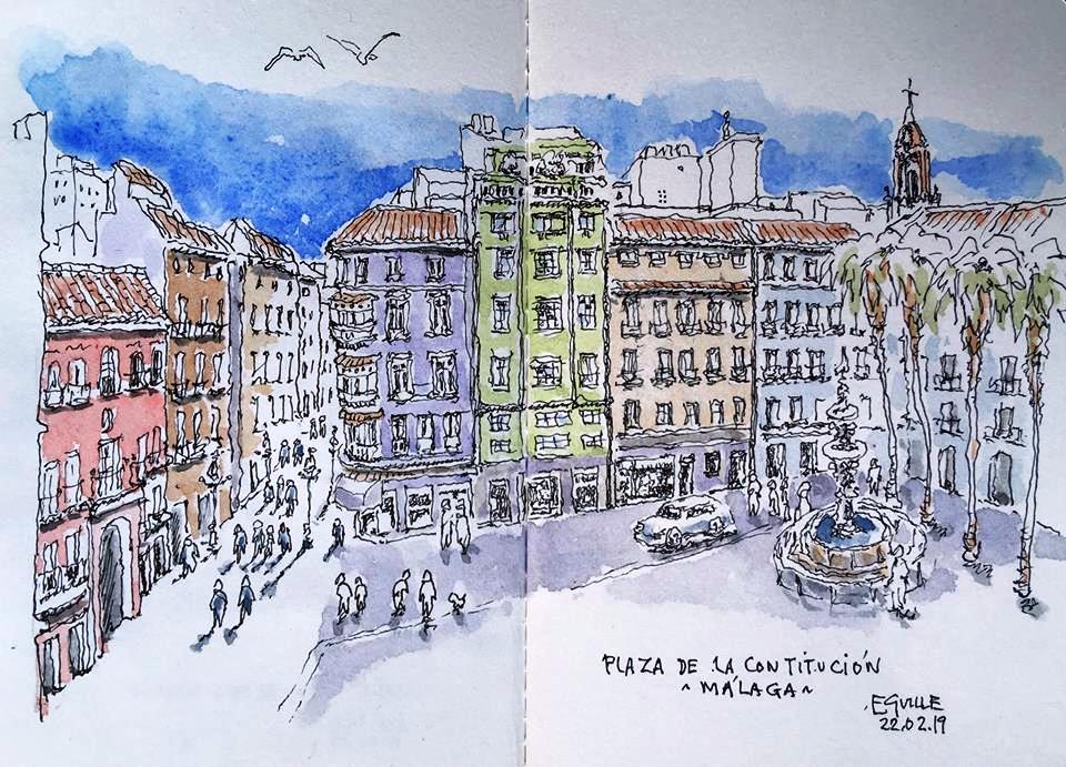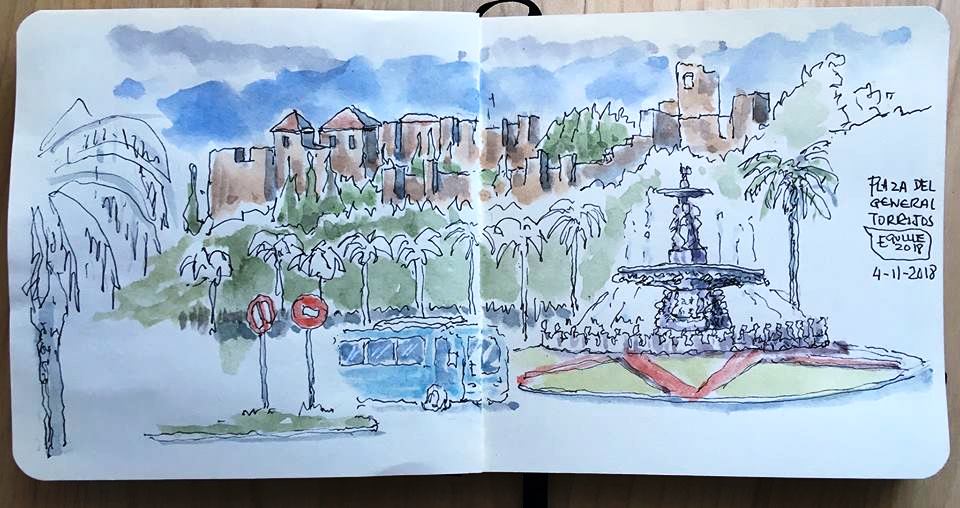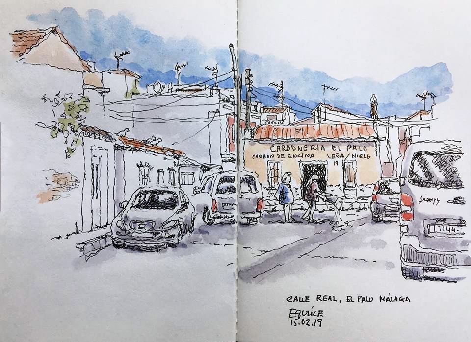 Tengo una especial predilección por la técnica artística pictórica denominada «Urban Sketcher». Muchos la conocerán. Me introdujeron en este ámbito dos queridos amigos  –ambos máximos exponentes en el grupo de Málaga– como son Javier Rico y Luis Ruiz Padrón.