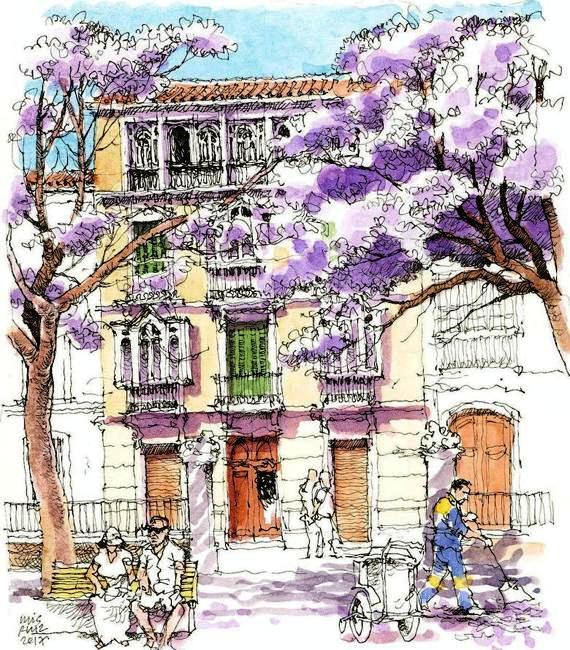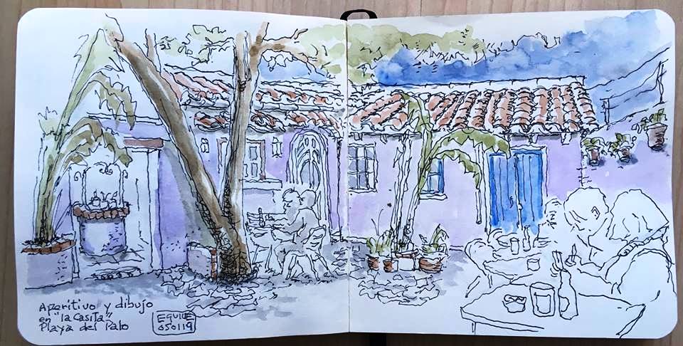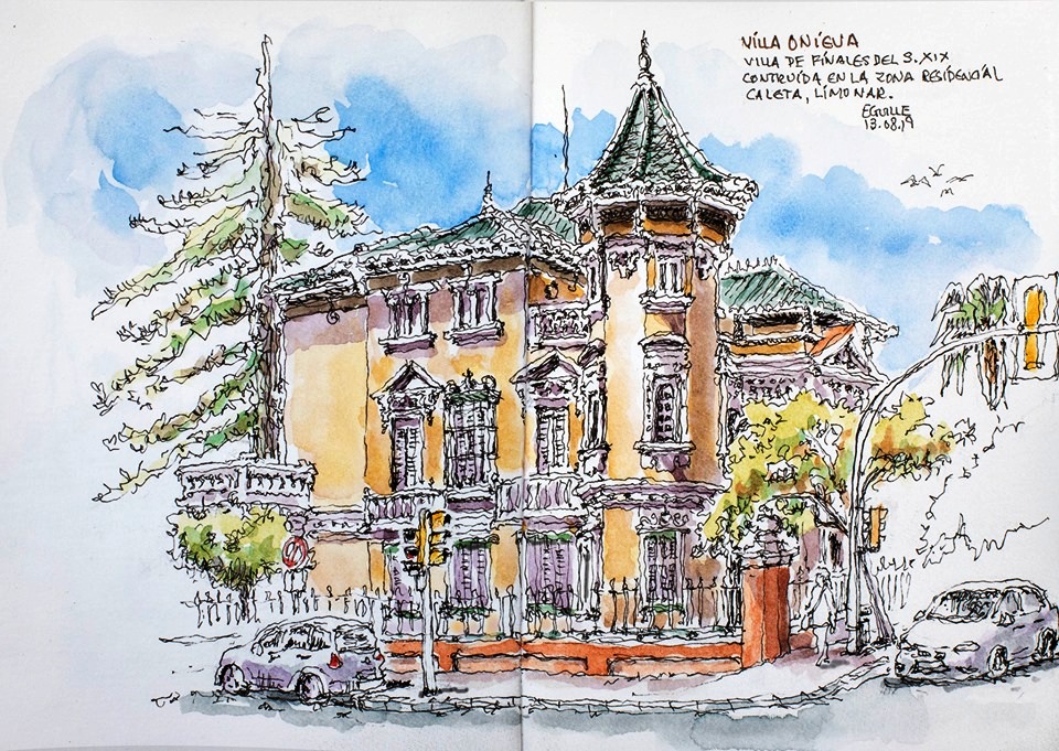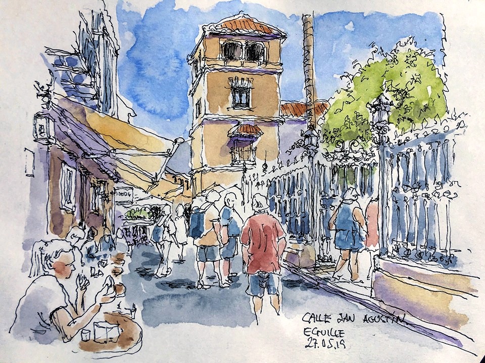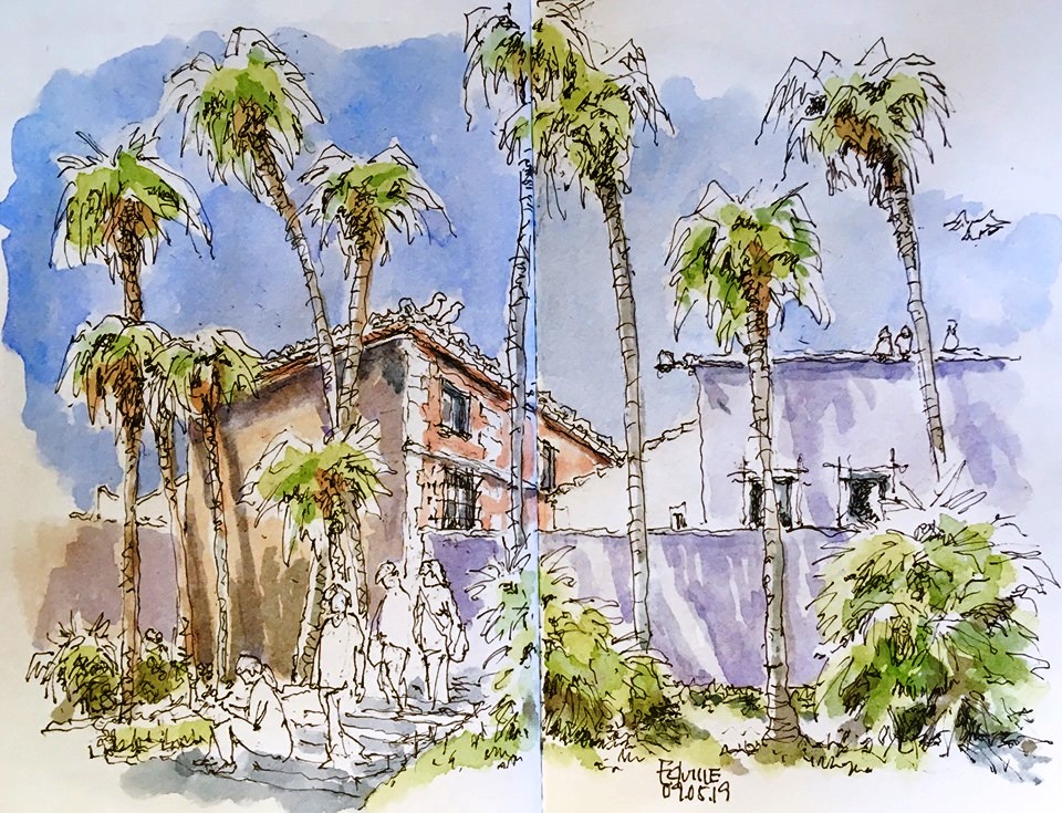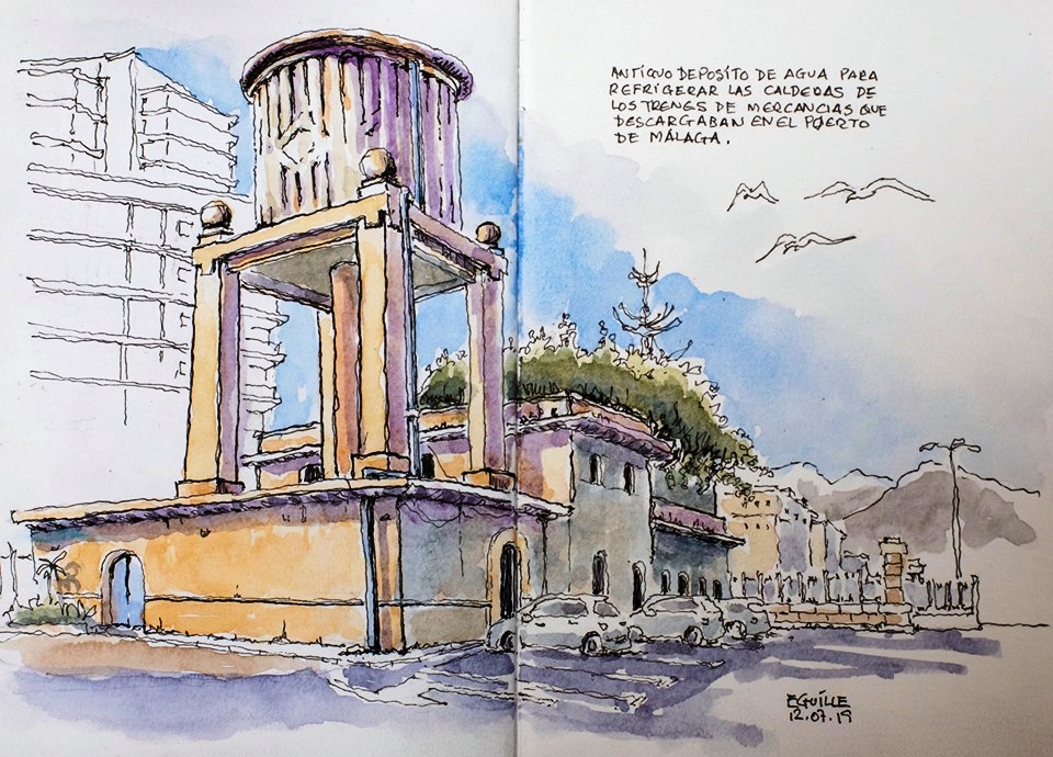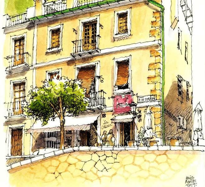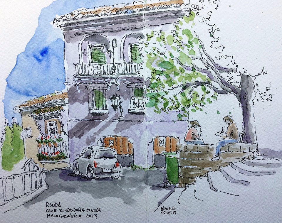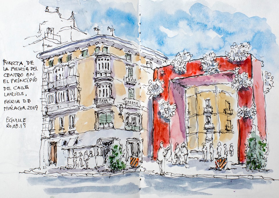 Tengo una especial predilección por la técnica artística pictórica denominada «Urban Sketcher». Muchos la conocerán. Me introdujeron en este ámbito dos queridos amigos  –ambos máximos exponentes en el grupo de Málaga– como son Javier Rico y Luis Ruiz Padrón.