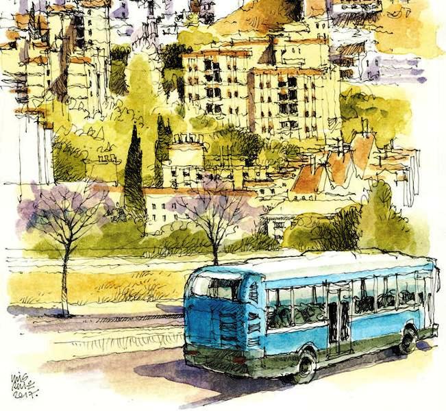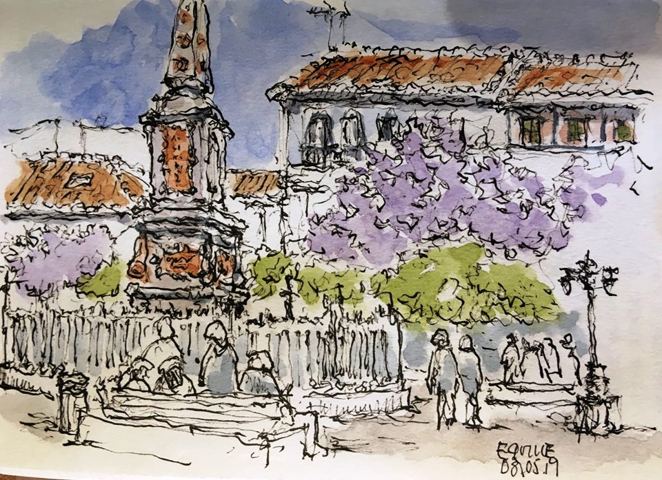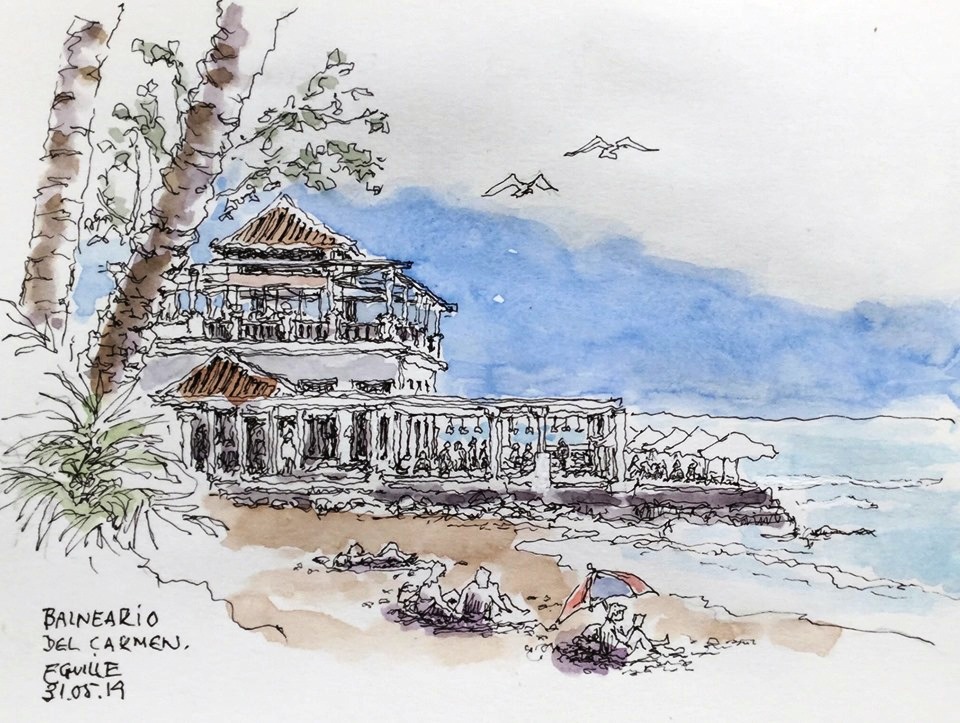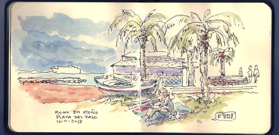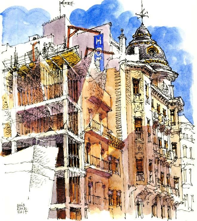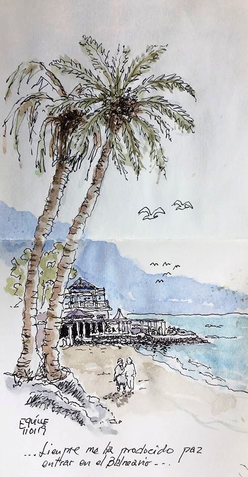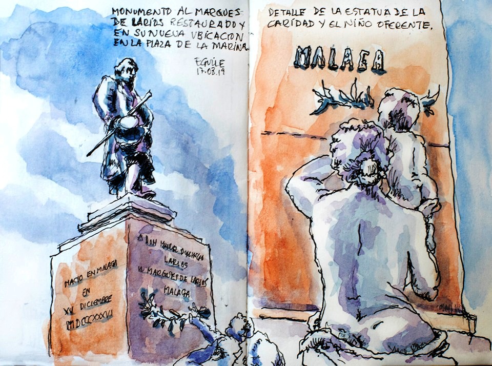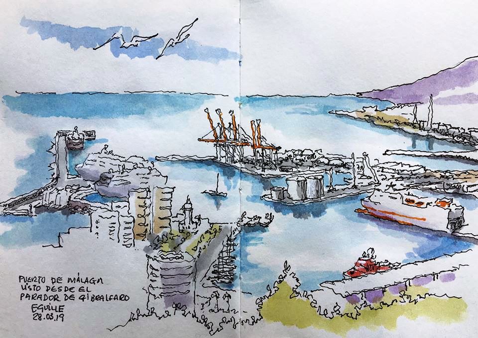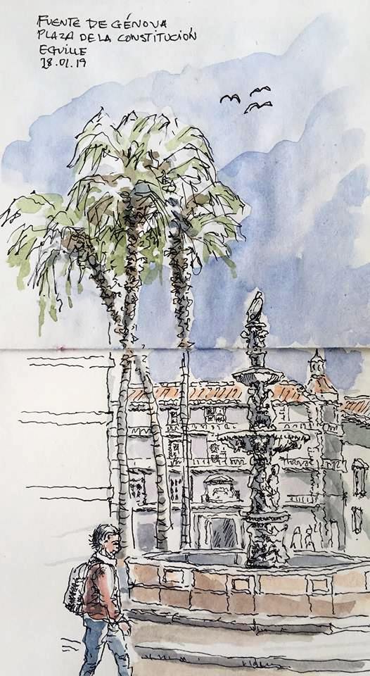 Tengo una especial predilección por la técnica artística pictórica denominada «Urban Sketcher». Muchos la conocerán. Me introdujeron en este ámbito dos queridos amigos  –ambos máximos exponentes en el grupo de Málaga– como son Javier Rico y Luis Ruiz Padrón.