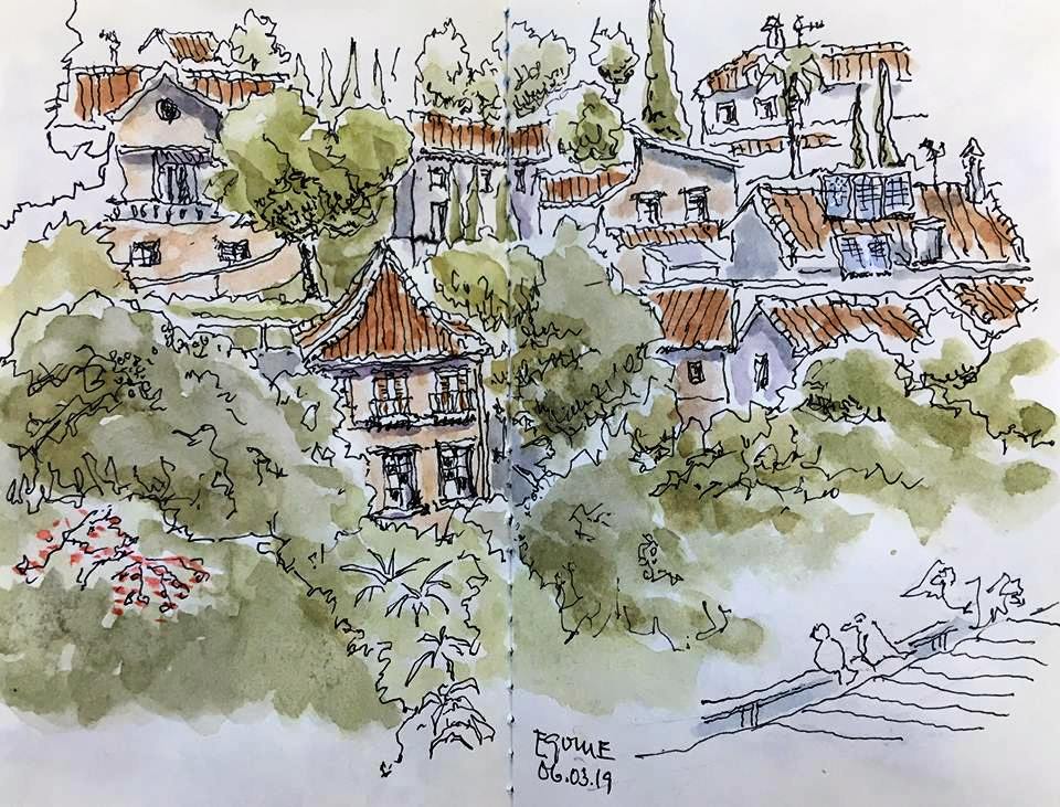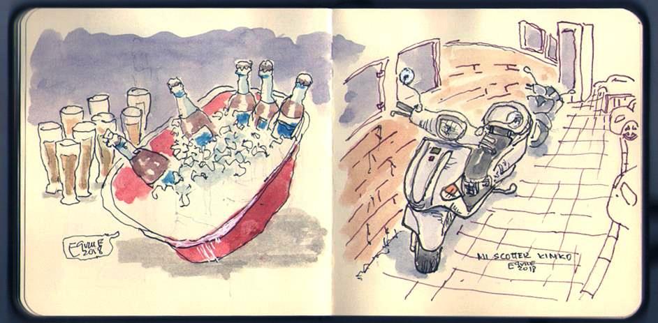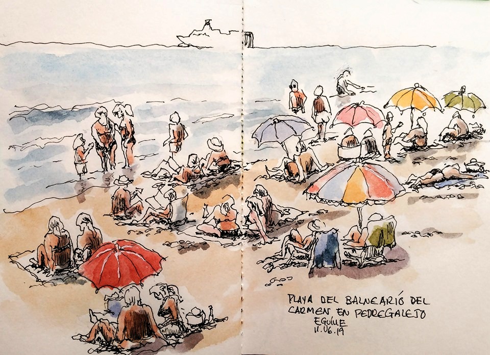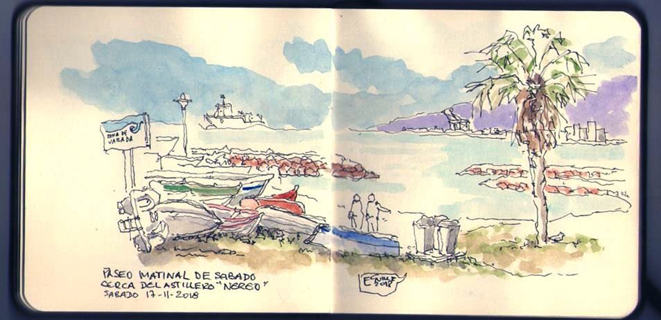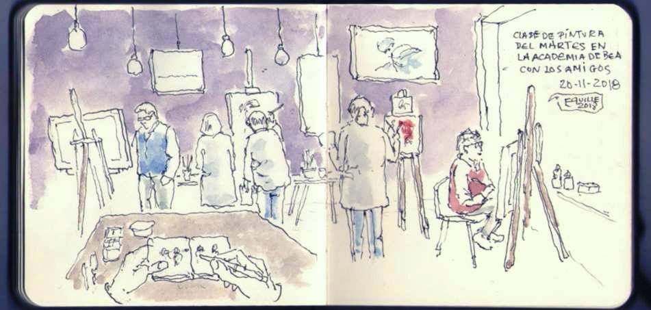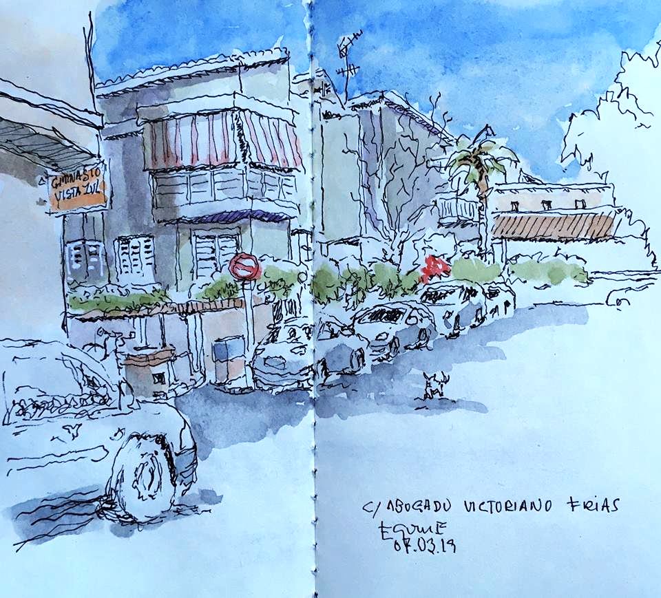 Le comenté a Edu la enorme aceptación que tenía su ultima hornada de dibujos Urban Sketchers.  La admiración que levantaba en extraños y conocidos. La enorme dificultad de elegir uno de ellos como favorito porque todos poseen la virtud del paisaje vivo y su  perfecta interpretación pictórica.