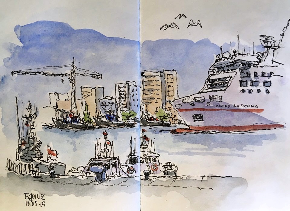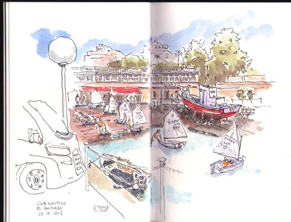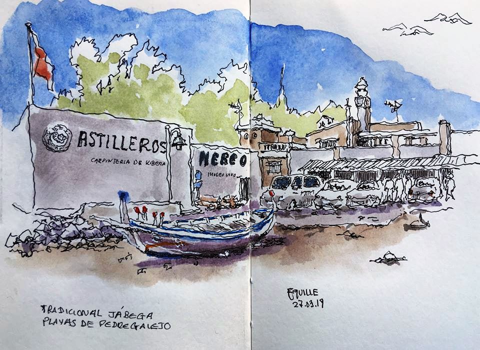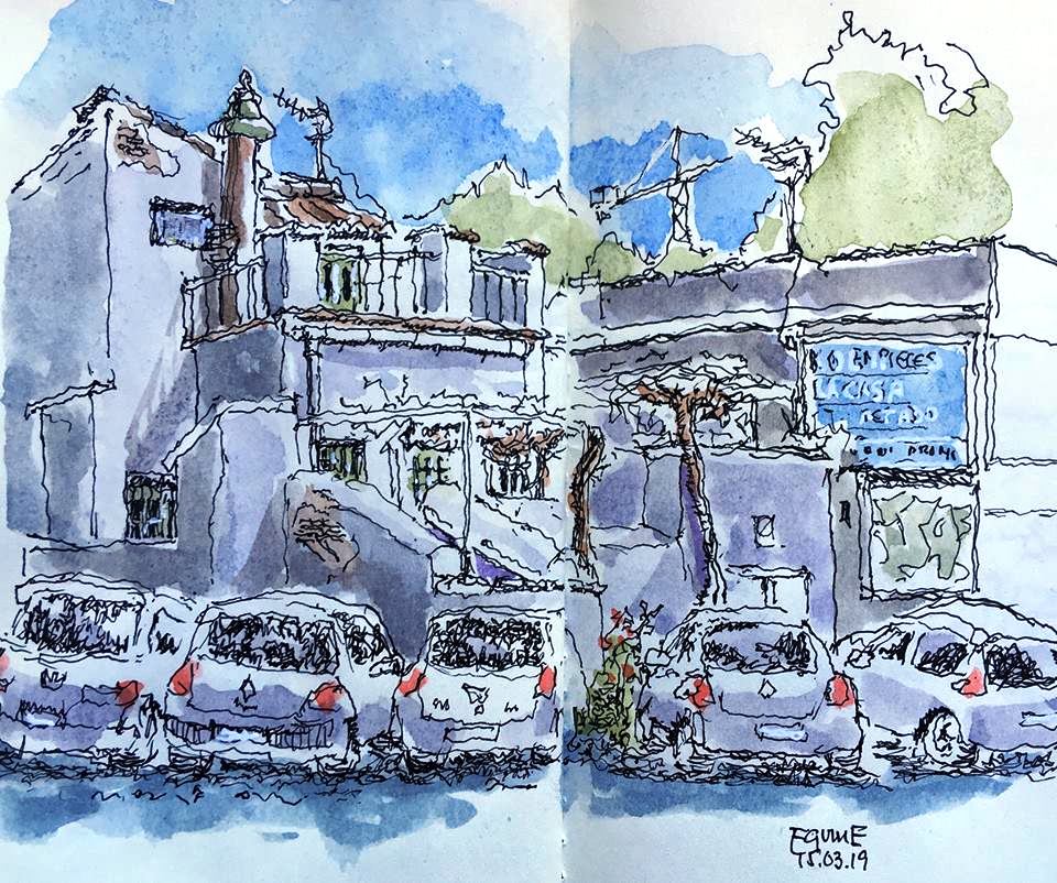 Eduardo Guille lleva teniendo, desde hace un cierto tiempo, una prolija actividad en cuanto a su faceta de Urban Sketcher ( ya saben esa técnica del dibujo «boceteado» realizado a pie de calle) y cada día, su técnica en esta disciplina (es opinión generalizada entre los grandes de este método) va progresando y desarrollándose positivamente de una manera manifiesta e incontestable.
