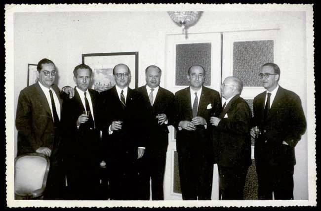 Luis Rosales, José Coronel Urtecho, José María Souvirón, Eduardo Carranza, Leopoldo Panero, Dámaso Alonso y Luis Felipe Vivanco, años 50.