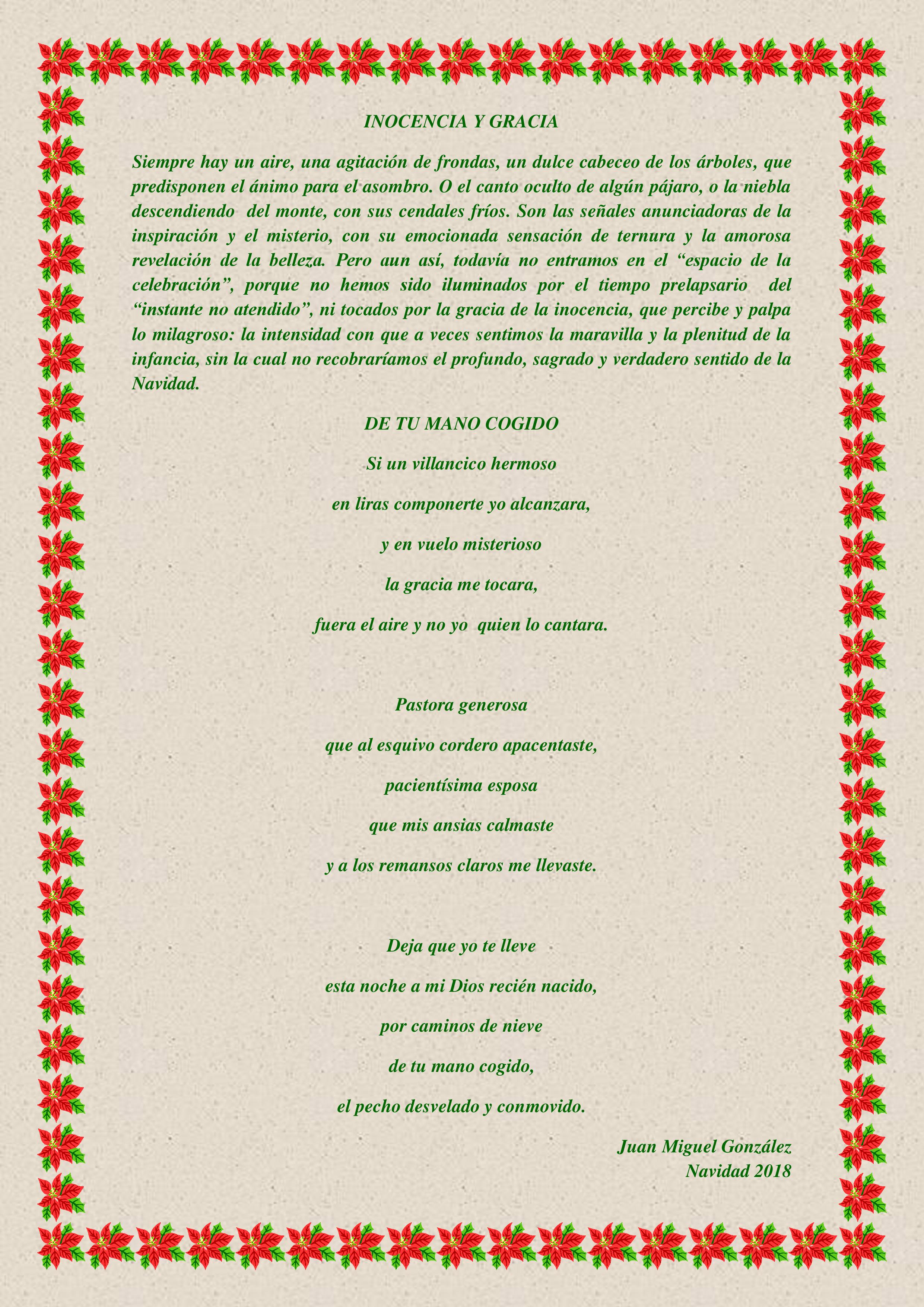 Pues bien, aprovechando la circunstancia, y para celebrar esta festividad oportunamente, se me ha ocurrido insertar en este blog un poema del citado Poeta Juan Miguel González que, con su maestría lírica habitual y su especialísima sensibilidad, dedica a esta noche y que para vuestro deleite, transcribo aquí. Una deliciosa composición que deberíais leer saboreando cada línea, para vuestro gozo y disfrute. Con la atención debida para vuestro agrado y satisfacción que diría un ínclito Rey emérito de esta nuestra querida nación. ¡VERDE!